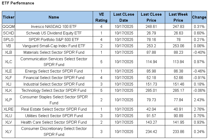U.S. equities ended the week on a resilient note, with broad-based gains across most sectors. The S&P 500 ETF (SPLG) rose modestly ay 0.21%, while the tech-heavy Invesco Nasdaq 100 ETF (QQQM) added 0.31%-extending its strong year-to-date leadership. Notably, defensive and rate-sensative segments led performance this week, signaling a subtle shift in market tone as earnings season intensifies.